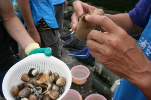 9時30分 開会式〜ごみ拾い〜カニつり体験