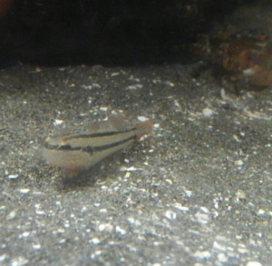追加したチチブは目が白くてギョロっとしており、全長5cmほどのハゼ科の魚は2本のストライプ模様がとても鮮やかで なかなか個性的です。