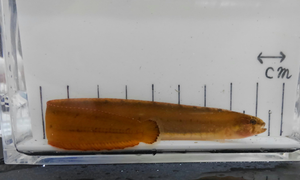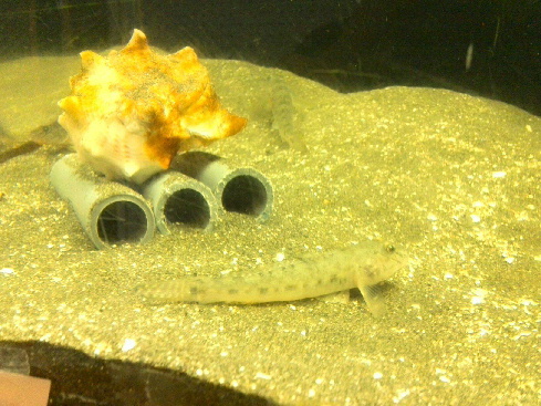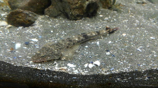 そのまま三番瀬水槽に入れると、他の魚にエサをとられて、餓死してしまう可能性があるので、現在は隔離水槽に入れて飼育しています。 まだ人工のエサには見向きもしませんが、生きたゴカイ類を与えてやると、すごい勢いでズルズルと食べます。