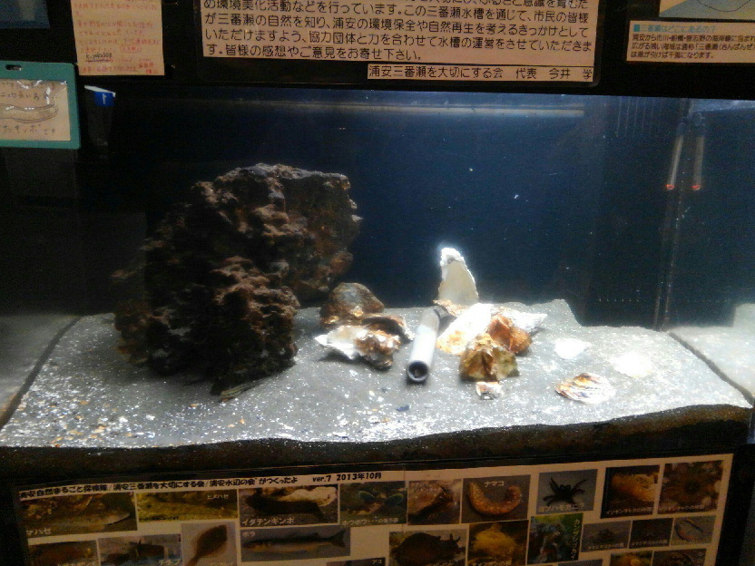 それと今日は、以前からエサを吐き出してしまって調子の悪かったイシガレイ君1号を、浦安郷土博物館の水槽へ移動させました。 (2つある小さな水槽の右側です)。博物館だと専門のスタッフさんが毎日様子を見てくれます。環境を変えたことで、回復に繋がればいいのですが…。