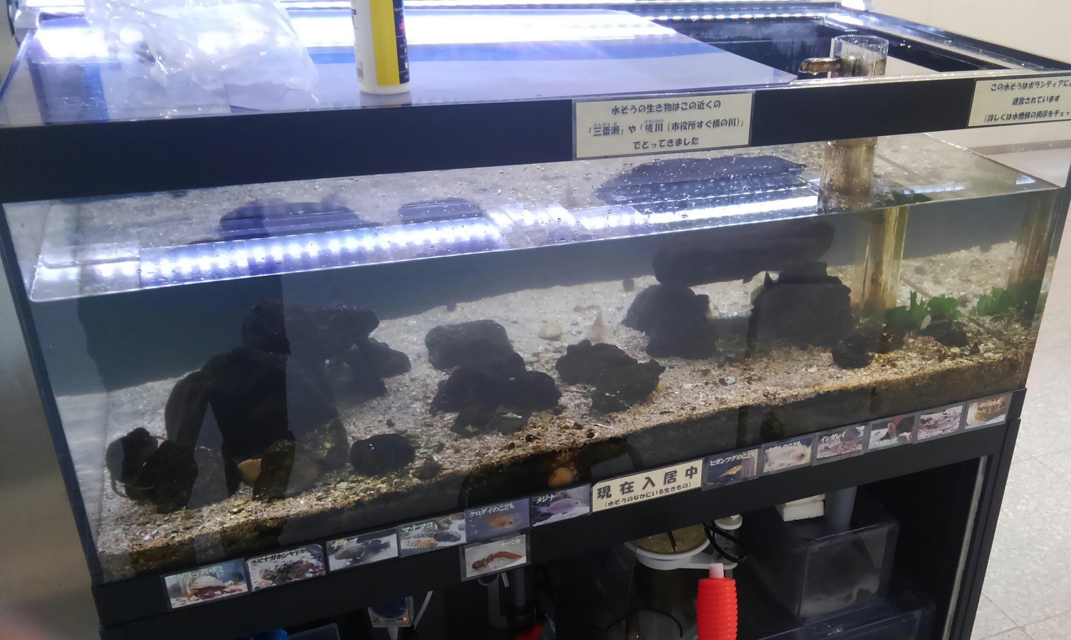 本日、市役所水槽にマハゼ4尾、メバル2尾を追加しました。 新生物の安全のため、シマイサキ1尾とチチブ1尾は三番瀬へお帰り頂きました。 久々に新しい生物の導入に水槽全体がそわそわしています。