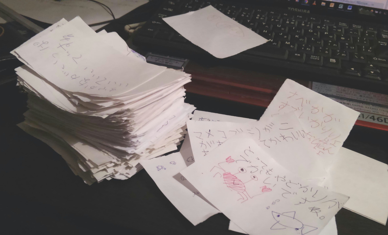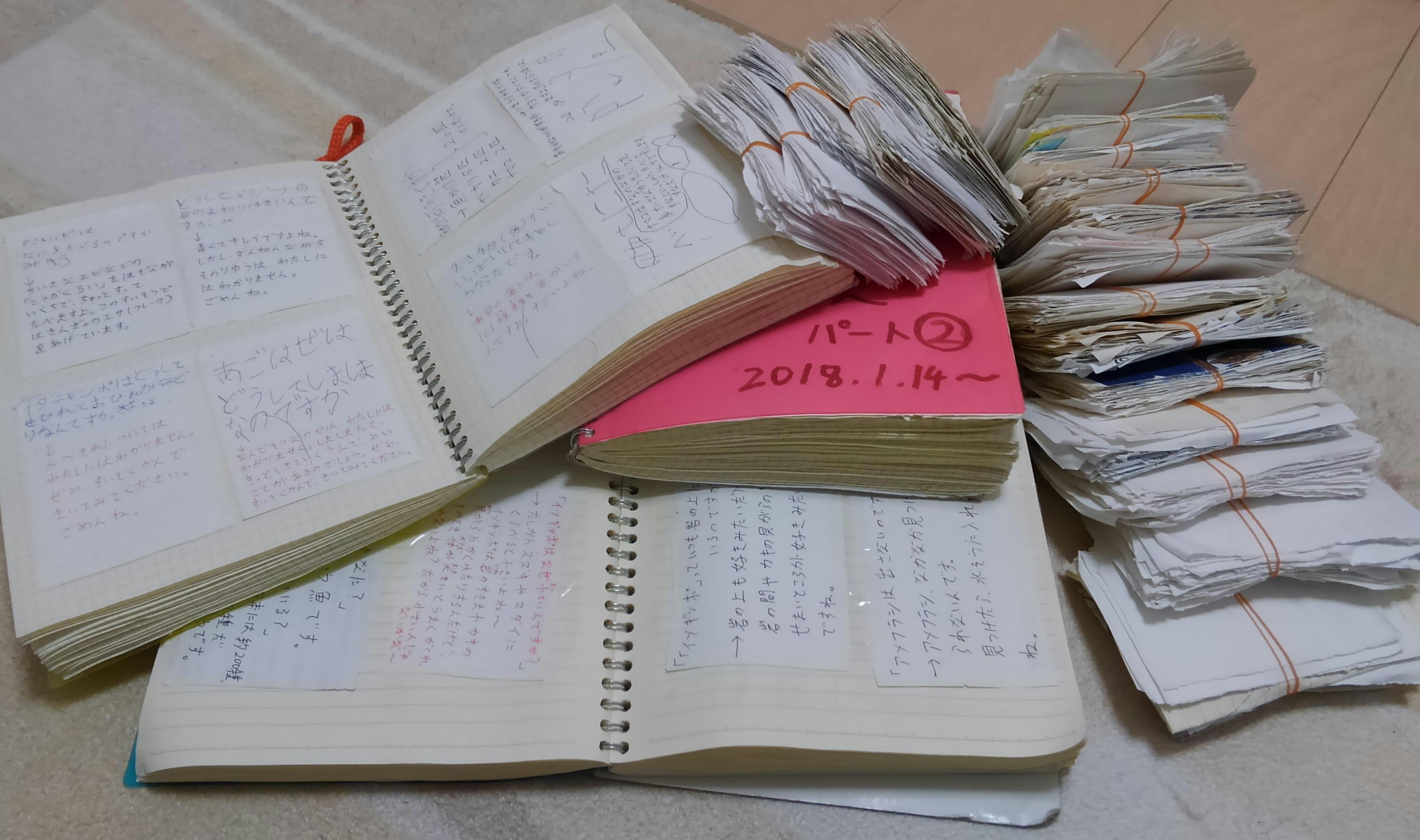 (写真:2020年に頂いた感想・質問文、アミメハギ、マナマコ)