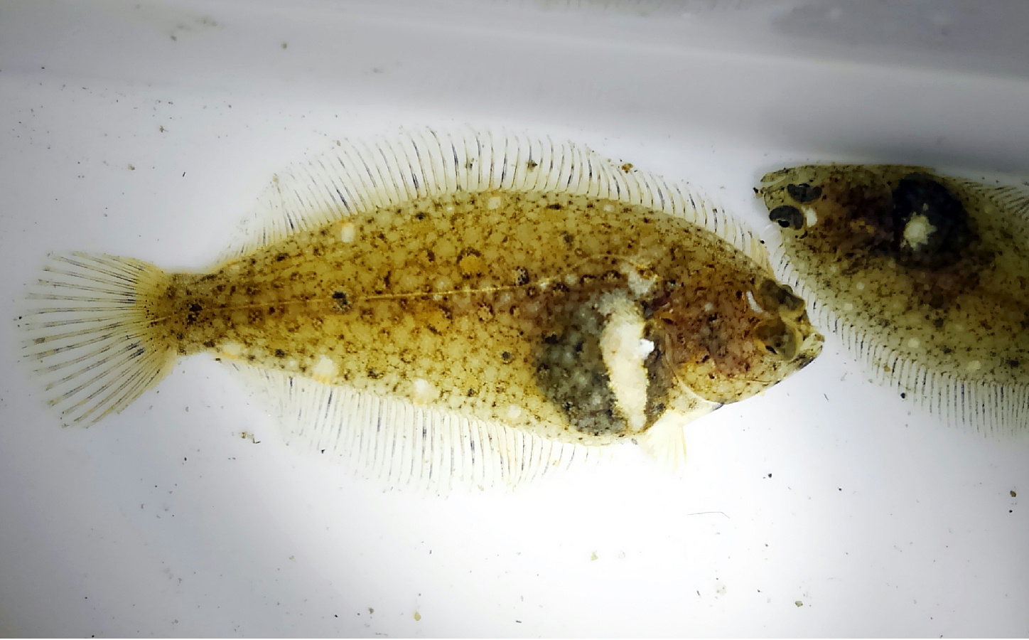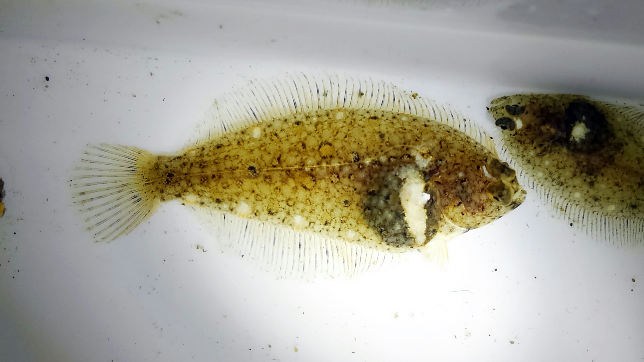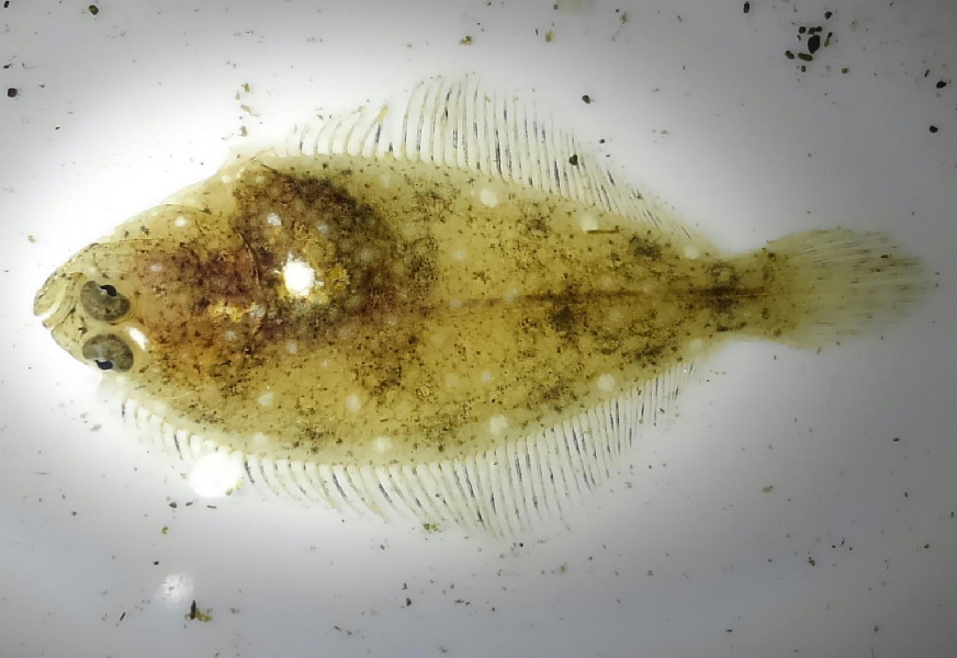実は私が浦安でメイタガレイを発見・採集したのは今回が初めてで、なかなかレアな魚だと思います。 四角に近いひし形の体をしており、口と眼が非常に近く、さらに口はとても小さいです。