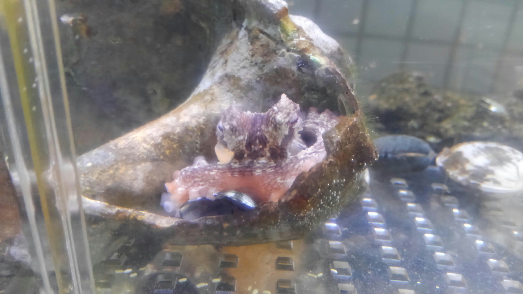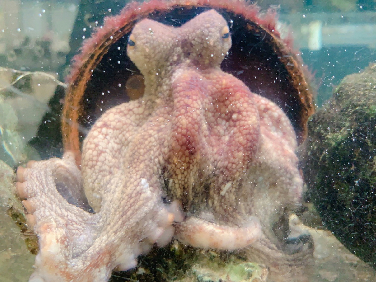 原因はわかりません。寿命は2年前後という話が多いので寿命かもしれません。ただ、狭い隔離水槽の中に入れられ、人に見られる生活はマダコにとって非常にストレスなのは間違いありません。それでもマダコを飼い続けたい、色んな人に見てもらいたい、そんな気持ちでした。