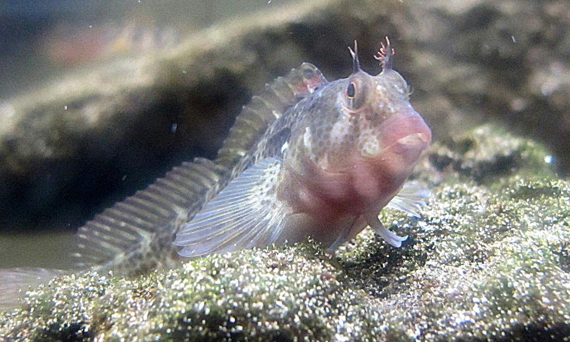 市役所水槽で嬉しい出来事がありました! ずっとエサを食べなかった新入りのダイナンギンポが今日とうとうエサを食べてくれました!! 乾燥オキアミをダイナンギンポの鼻先に置いてやると、警戒しつつも、パクッと咥えて大慌てで岩陰へ…。見た目とは裏腹にけっこー繊細な性格なのかもしれません(笑)